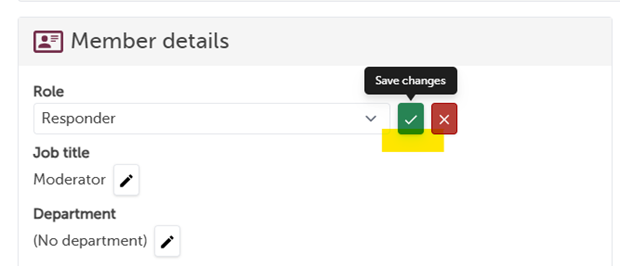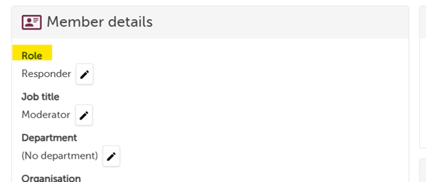 - In the Member details section you will see Role and their current role, this will be either a Member, a Responder or an Administrator.