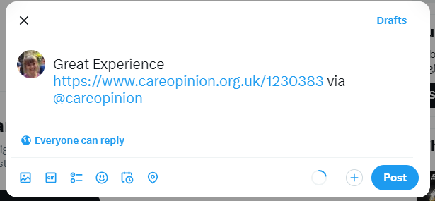 You can also craft your own posts just using the story URL. We do this at Care Opinion Canada and so do several organisations we work with. For example: