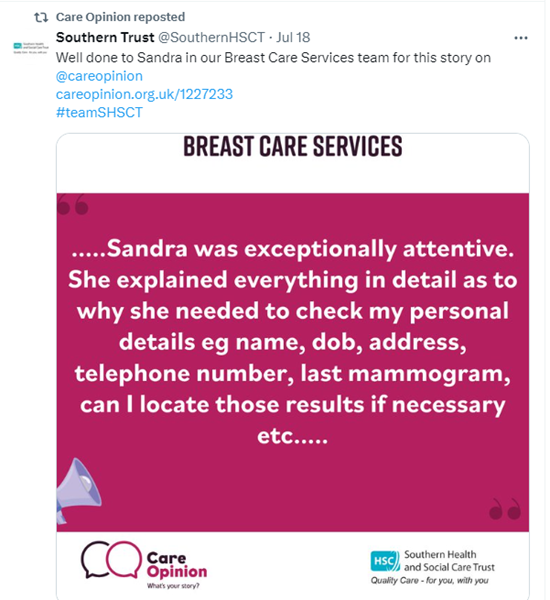 Part of what makes Care Opinion Canada unique is that the stories people share with us are readily available to share with others. This increases the potential learning and impact of each story. We do let people know when they share a story on Care Opinion Canada all the different ways their story could be shared and used. We tell people on our consent page.